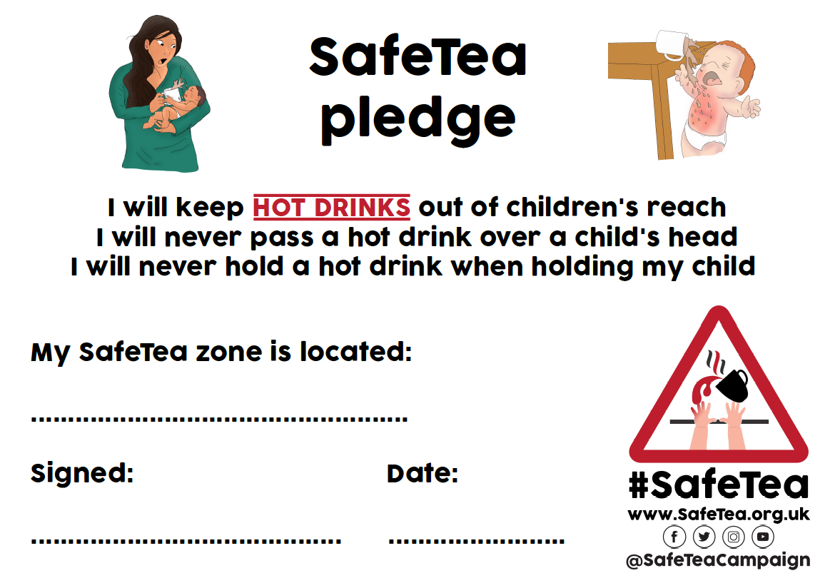 - Make your home a SafeTea zone: a safe place for hot drinks at home, out of reach of small children